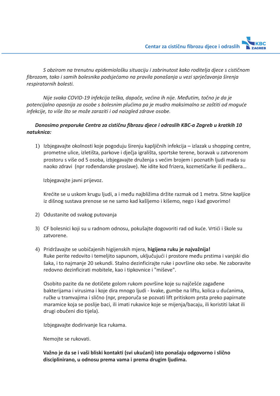 U suradnji sa Centrom za cističnu fibrozu djece i odraslih KBC-a Zagreb, donosimo najnovije upute za trenutnu situaciju u vezi COVID-19.